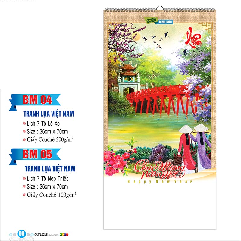 BM04 – Lịch Lò Xo 7 Tờ 40x60cm – Tranh Lụa Việt Nam