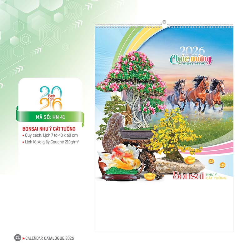 HN41 – Lịch Lò Xo 7 Tờ 40x60cm – Bonsai Như Ý Cát Tường