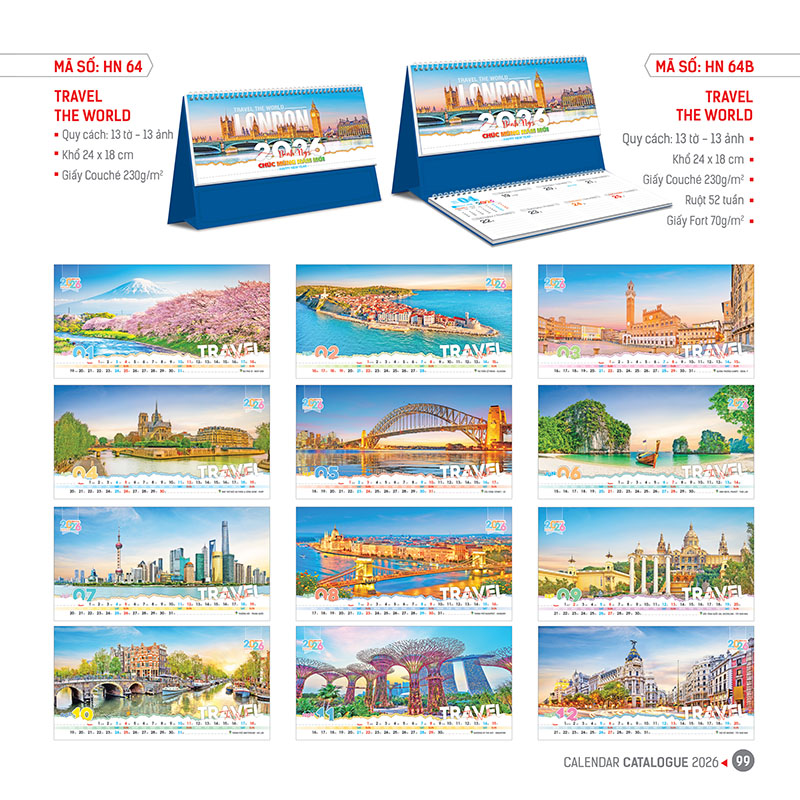 HN64 – Lịch Để Bàn 18x24Cm – Travel The World