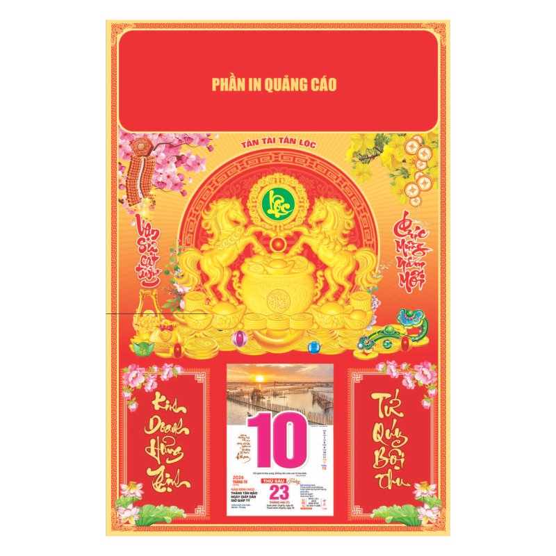NB3D 16T – Bìa 40x60cm Gắn Bloc Dán Nổi 3D – Kim Mã Phú Quý