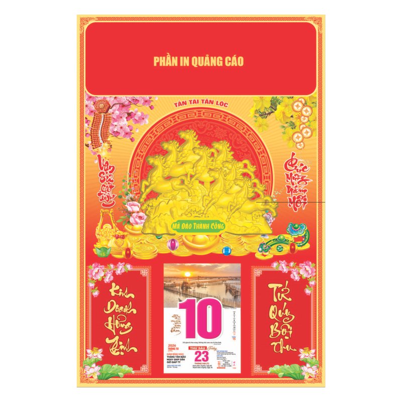 NB3D 8D – Bìa 40x60cm Gắn Bloc Dán Nổi 3D – Song Mã Tài Lộc
